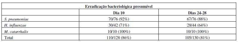 Eficácia utilizando azitromicina por 3 dias (10 mg/kg/dia)2