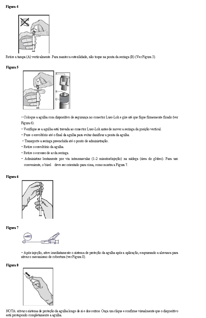 Solução injetável 250 mg/5 mL (50 mg/mL) em embalagem com 1 seringa preenchida contendo 5 mL, acompanhada de 1 agulha estéril descartável.