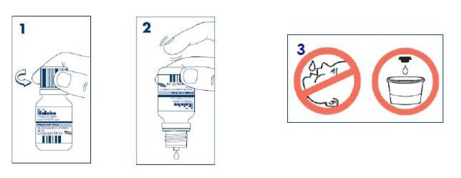 As gotas de Kaloba® devem ser ingeridas com algum líquido, meia hora antes das refeições. Segure o frasco verticalmente e, se necessário, bata levemente no fundo do frasco, tal como indicado abaixo: