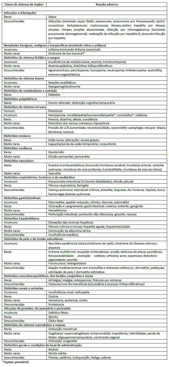 Os casos de reações adversas neurológicas severas que variaram de cefaleia à paralisia, coma e episódios semelhantes a AVC foram relatados principalmente em jovens e adolescentes que receberam metotrexato intratecal em combinação com citarabina intravenosa.