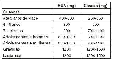 As necessidades de cálcio variam de acordo com a idade e são estabelecidas de maneira diferente em nível mundial. As doses diárias recomendadas para a maioria das pessoas sadias sob condições de estresse usual estabelecidas pelo "Food and Nutrition Board" (EUA) e as ingestões recomendadas no Canadá são as seguintes: