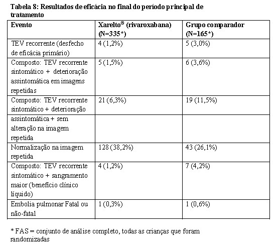 Foi conduzida uma análise agrupada pré-especificada do resultado dos estudos EINSTEIN TVP e EINSTEIN EP (veja Tabela 4).