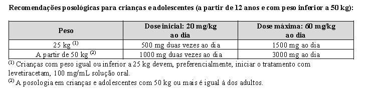A dose diária de levetiracetam deverá ser individualizada de acordo com a função renal, pois a depuração está relacionada com a função renal. Para crianças com comprometimento renal, as doses de levetiracetam devem ser ajustadas com base na função renal, uma vez que sua depuração está relacionada com a função renal. Esta recomendação é baseada em um estudo com pacientes adultos com comprometimento renal.
