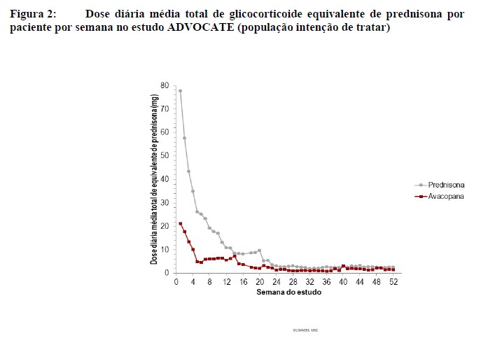 No estudo principal de fase 3 ADVOCATE, a dose média cumulativa total de prednisona, desde o primeiro dia até ao fim do tratamento, foi aproximadamente 2,3 vezes mais elevada no grupo comparador em relação ao grupo da avacopana (3846,9 mg vs. 1675,5 mg, respectivamente).